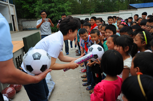 六一前夕,開元集團(tuán)董事長(zhǎng)許明月在得知洛寧縣東宋鎮(zhèn)郭村小學(xué)桌椅陳舊、體育器材短缺的消息后,安排購(gòu)置了80套桌椅板凳、1副藍(lán)球架、1張乒乓球臺(tái)、5個(gè)足球、5個(gè)籃球、2副羽毛球拍、2副乒乓球拍等價(jià)值2萬余元物資,帶去開元人的深情厚誼。